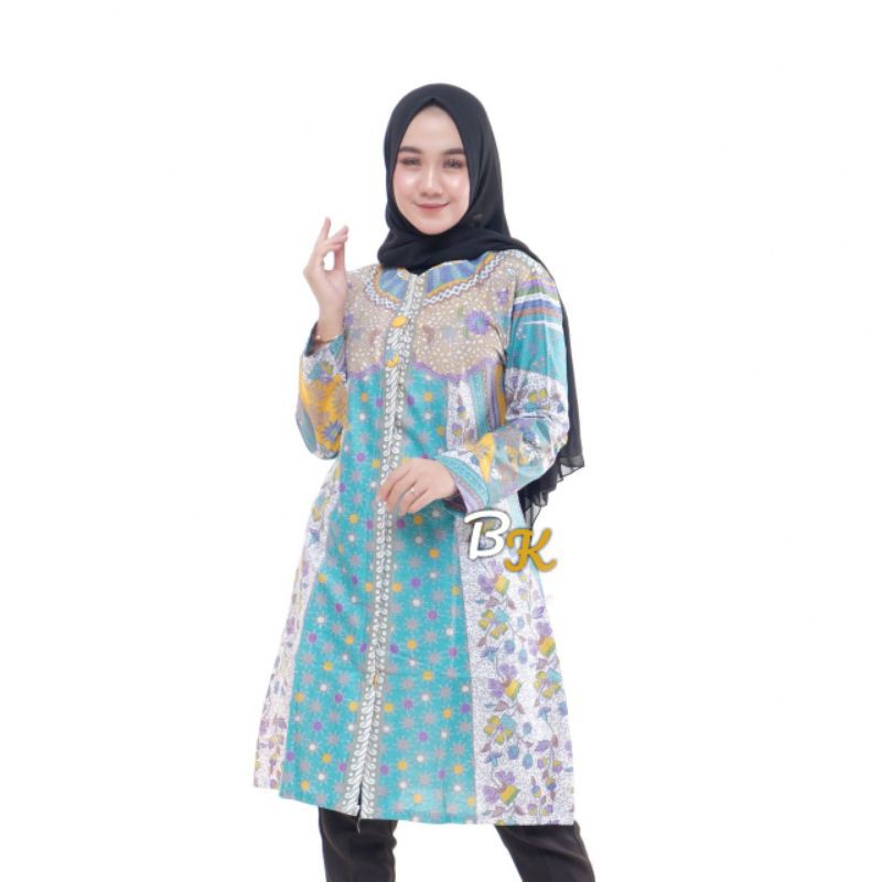TUNIK BATIK ZIPER KANCING DEPAN