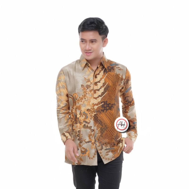 Promo Pakaian di Kabupaten Aceh Utara Kemeja Batik Pria Dewasa Lengan Panjang Premium Sutra Halus Warna Emas Kuning Abu-abu Silver Coklat dari Abah Outfits Store Kota Pekalongan