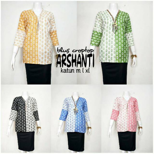 Name: Blus Crop Top Arshanti Daun Etnik Atasan Modern Batik Super Duper cantik Buat Ngantor Seragam Pergi
