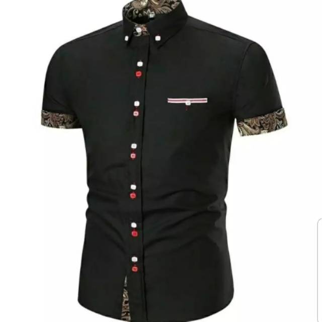 bahan katun sesuai gambar ada lis batik di lengan L50cm P70cm. fashionable dan kasual untuk pria. kualitas terjamin dan terbagus sejuk dan lembut. kerah tebal dan awet tidak mudah rusak. model juga stylist. ayo di klik beli sekarang
